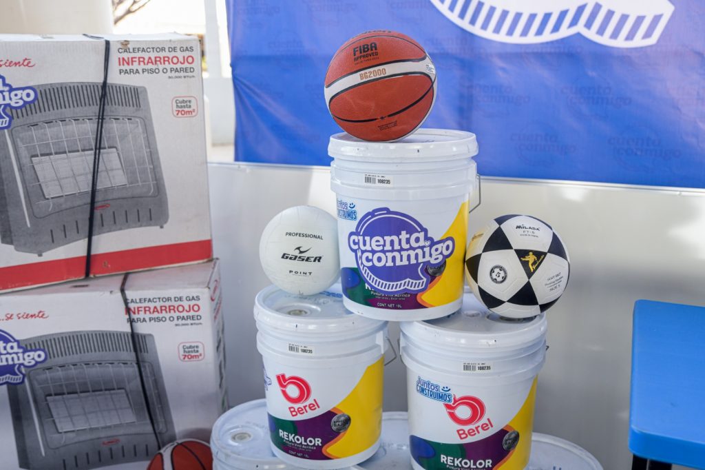 El equipamiento incluye pizarrones, butacas, tinacos, calentones, pintura y artículos deportivos, distribuidos en escuelas de Camargo, Jiménez, Julimes, La Cruz, Meoqui, Rosales, Delicias, San Francisco de Conchos, Satevó y Saucillo.