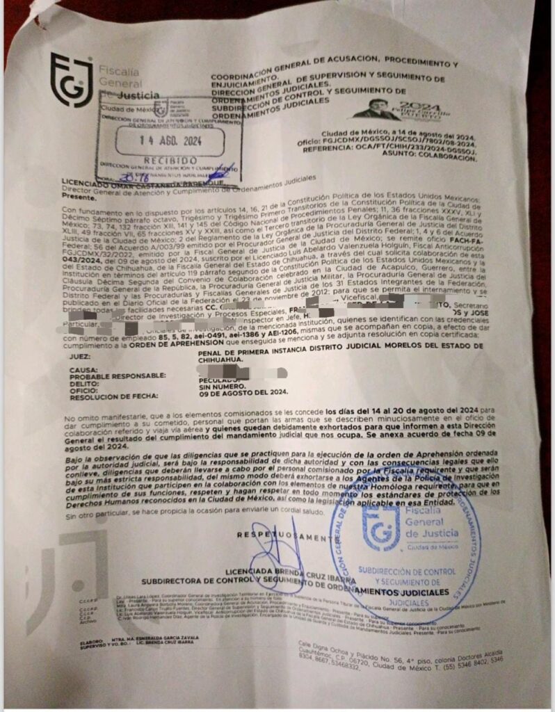 Regino detalló que dicho oficio cuenta con el sello de recibido por parte de la Fiscalía capitalina, lo que, según él, debería ser suficiente para proceder con la detención y traslado de Corral a Chihuahua. Sin embargo, al interferir en este proceso, Lara habría cometido un delito conocido como “negación del servicio público”, el cual es sancionado con penas de 2 a 8 años de prisión.