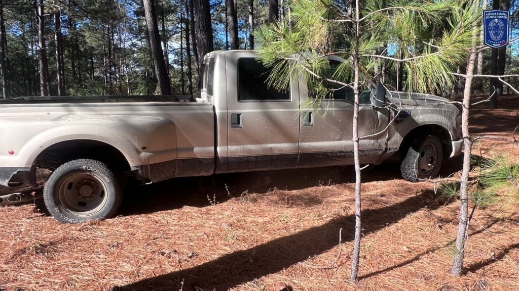 El tercer aseguramiento se realizó en el municipio de Urique, durante recorridos de vigilancia en una brecha que conduce al poblado La Mesa de Arturo. En el lugar fue encontrada una Ford F-350 modelo 2007, color café, sin placas de circulación y con reporte de robo vigente en Estados Unidos.