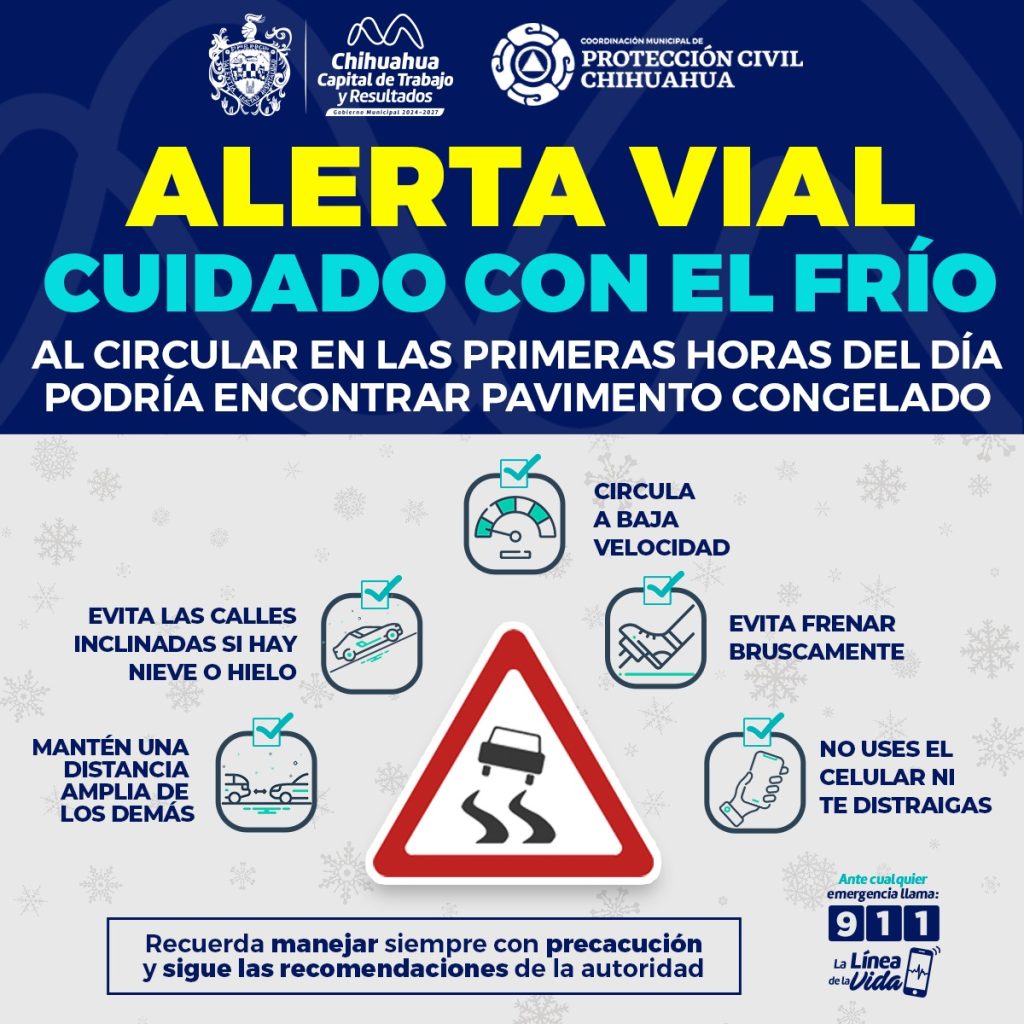 De acuerdo con la Coordinación Municipal de Protección Civil, las condiciones atmosféricas previstas combinan bajas temperaturas con humedad, una mezcla traicionera que convierte calles y avenidas en pistas de hielo sin previo aviso. El llamado es claro: precaución total al volante.