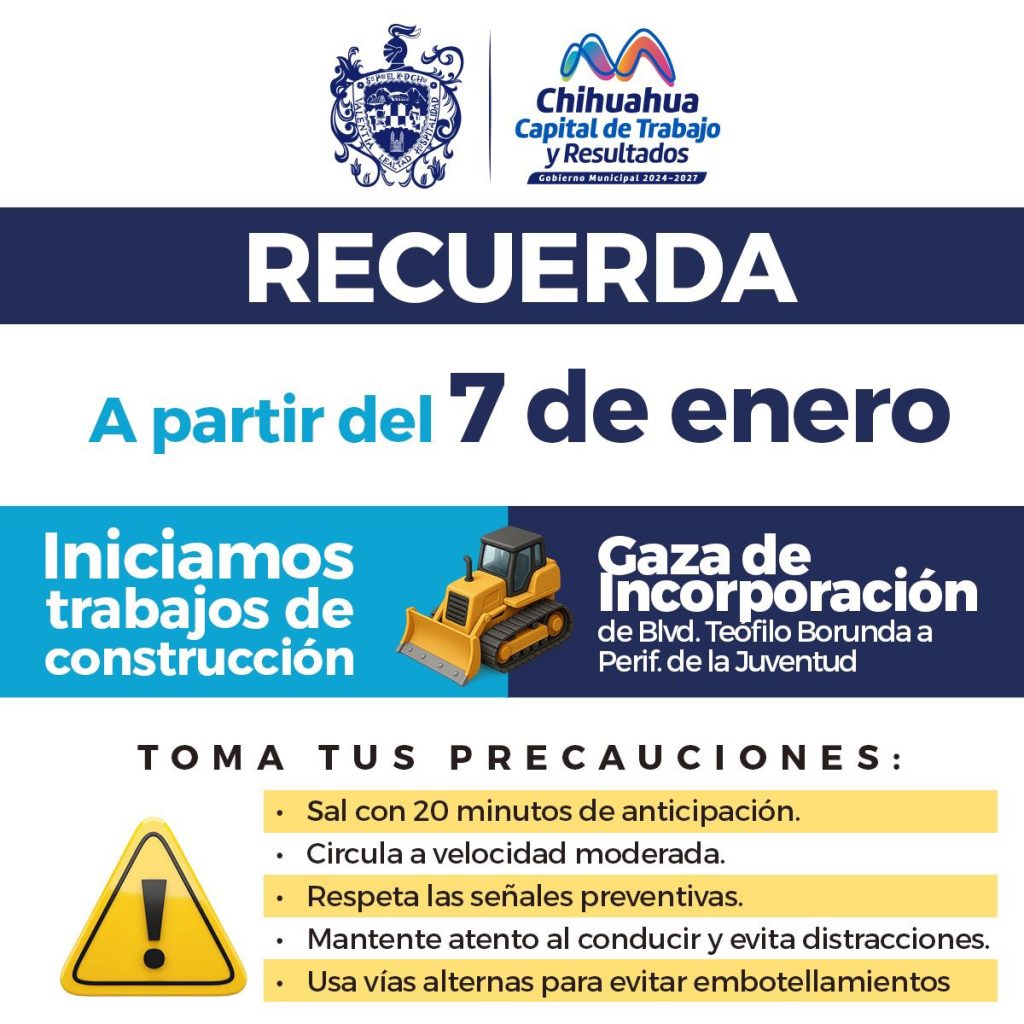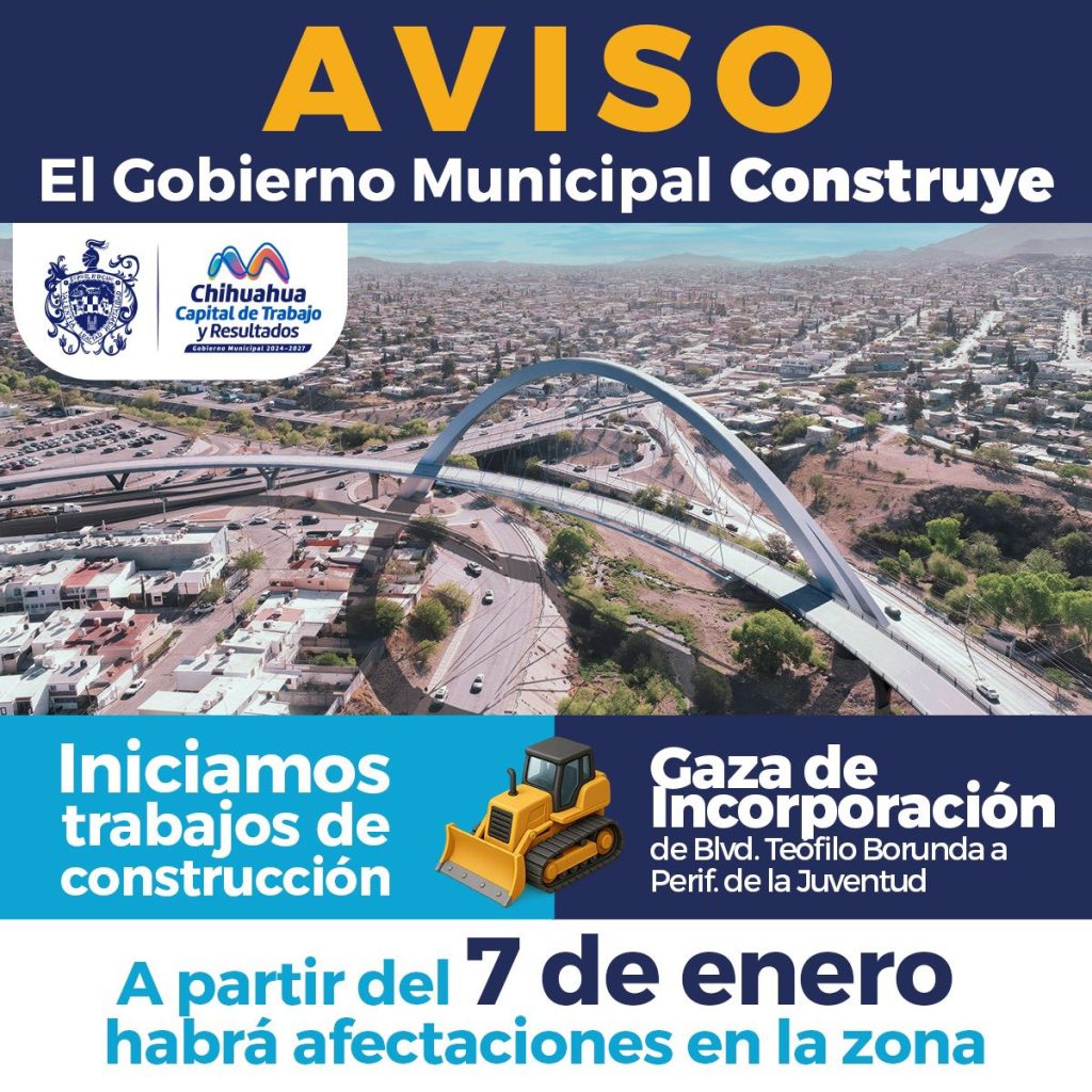 El Gobierno Municipal dio inicio a los primeros trabajos de la gaza de incorporación que conectará la Prolongación Teófilo Borunda con el Periférico de la Juventud, una obra estratégica que busca agilizar el tránsito y fortalecer la movilidad en una de las zonas con mayor crecimiento urbano de la ciudad.