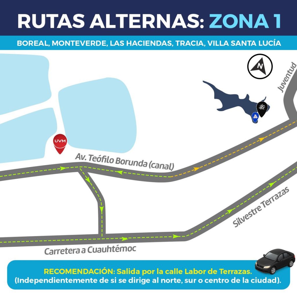 • Utilizar vías alternas como la calle Labor de Terrazas y la avenida El Reliz