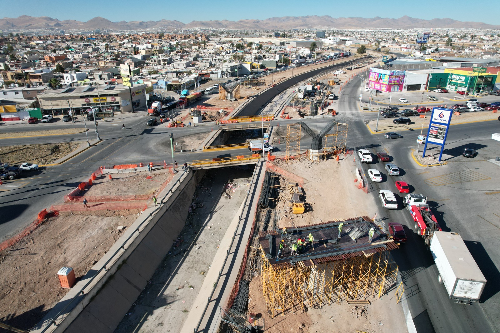 El Gobierno Municipal de Chihuahua mantiene el acelerador a fondo en materia de movilidad urbana. La construcción del Paso Superior en la vialidad Los Nogales y la avenida De las Industrias registra un avance físico del 19 por ciento, de acuerdo con la Dirección de Obras Públicas.