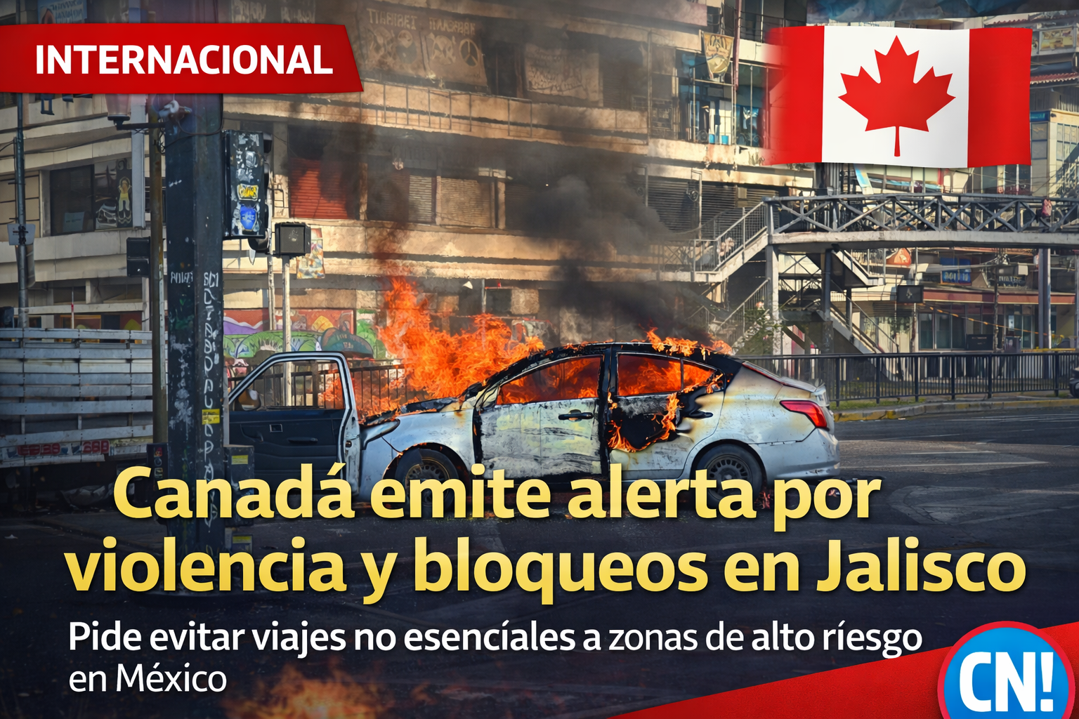 Canadá emite alerta por violencia y bloqueos en Jalisco; pide evitar viajes no esenciales a varias regiones de México