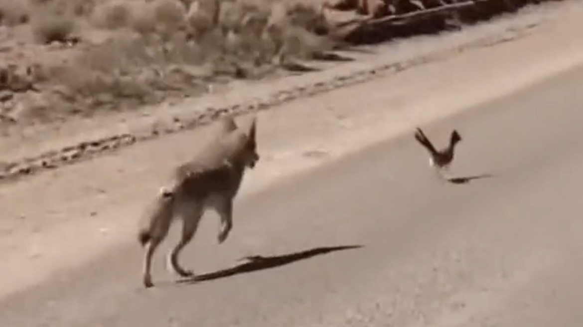 En redes circula video en donde se aprecia un coyotw desertico persiguiendo nada menos que a un correcaminos por una autopista. El video ha generado curiosidad y risas dado que es la clasica escena vista en algunas de las caricaturas mas conocidas y seguidas en la historia de la Television.