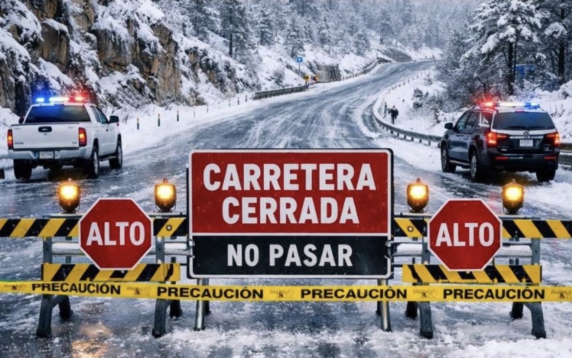 Se informa a la ciudadanía que la carretera Guachochi – Balleza permanece cerrada a la circulación vehicular debido a la acumulación de nieve y la probable cristalización por hielo durante la madrugada, condiciones que representan un alto riesgo para quienes transitan por este tramo.