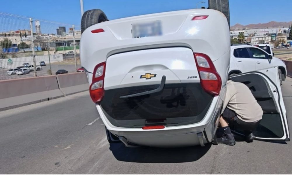 Chihuahua, Chih. — Una volcadura registrada la mañana de este martes en la gaza de incorporación de La Cantera dejó como saldo tres menores de edad...