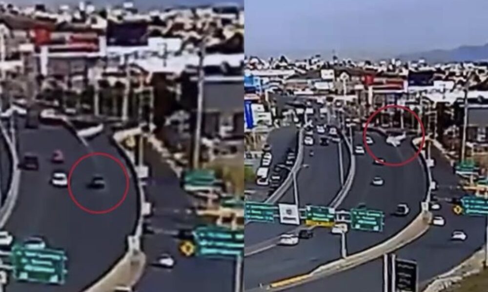 Cámaras de seguridad lograron captar el momento exacto del accidente en que un automovilista terminó por caer de un puente en el Periférico de la Juventud....