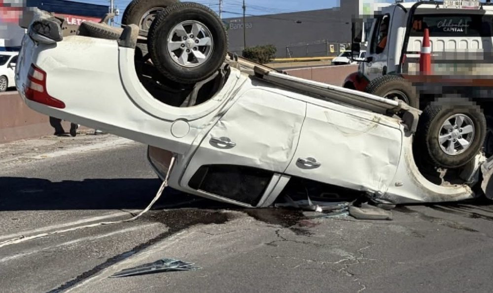 Un conductor volcó su camionetatras chocar contra otra camioneta la tarde de este miércoles 25 de febrero en el Periférico de la Juventud, a la altura de la Cantera, en la...