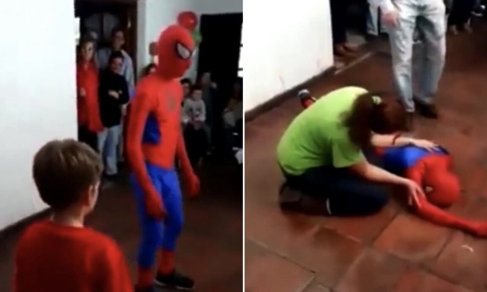 Un animador disfrazado de Spiderman terminó inconsciente luego de sufrir un golpe al intentar realizar una pirueta durante una fiesta infantil, hecho que quedó registrado en...
