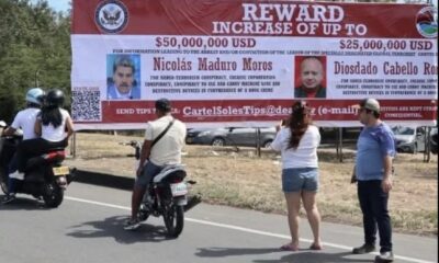 Una enorme valla publicitaria con la imagen de Nicolás Maduro y un mensaje ofreciendo 50 millones de dólares de recompensa por su captura apareció en Villa...