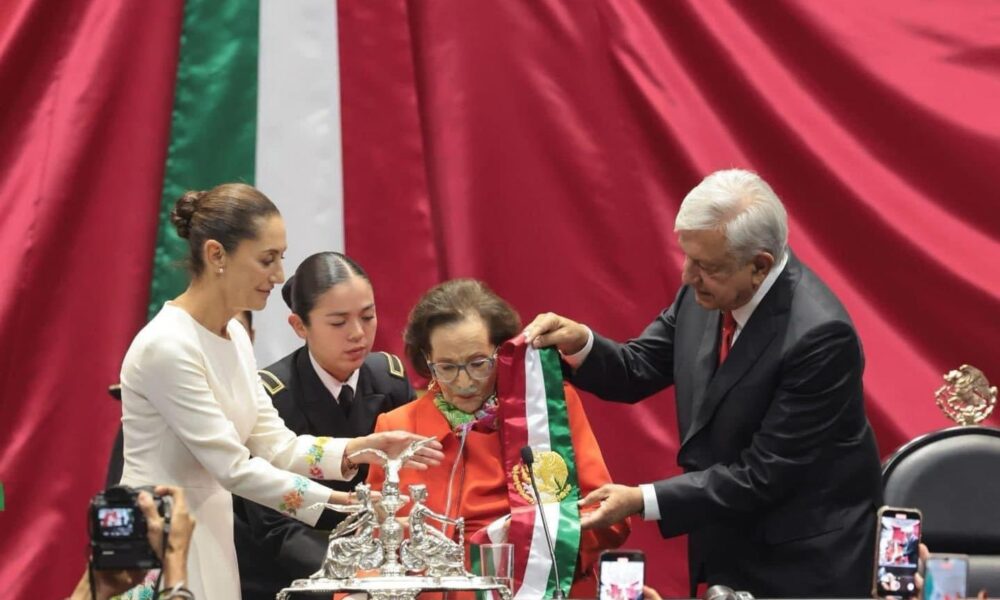 La presidenta de la Mesa Directiva en la Cámara de Diputados, Ifigenia Martínez, quien se encargó de entregar la banda presidencial a Claudia Sheinbaum el 1 de...