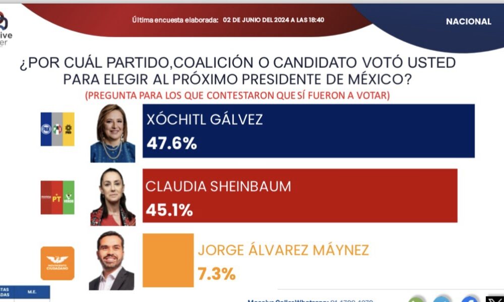 La Encuestadora Massive Caller declaró triunfadora en una encuesta de salida a la candidata de la oposición por la coalición PRI, PAN y PRD , Xochitl...