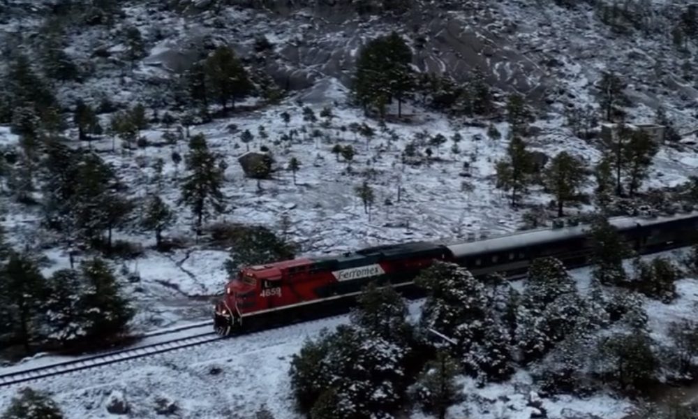Creel, Chihuahua — El Chepe Express inició su recorrido desde Creel con destino a Sinaloa, atravesando la Sierra Tarahumara que se encuentra cubierta de nieve. El...