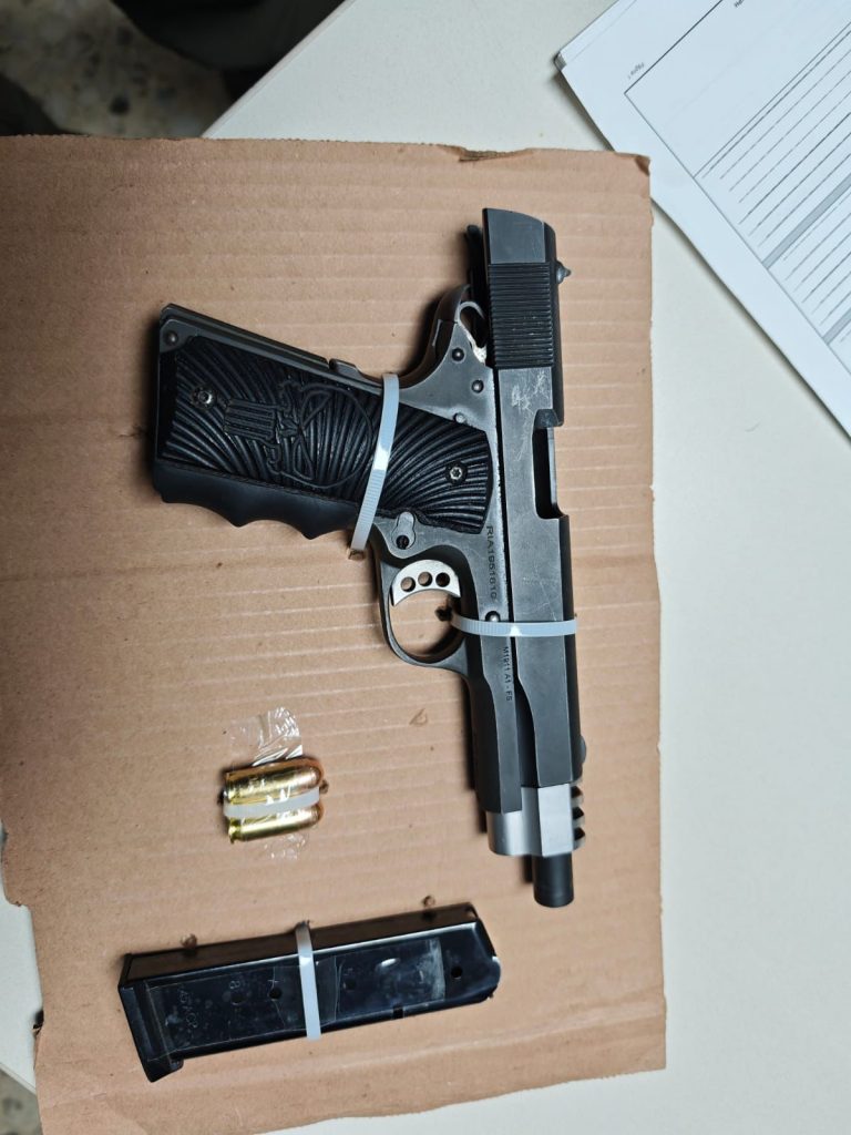 Al ingresar al domicilio señalado en la diligencia, los agentes localizaron a un hombre de 25 años de edad, identificado como Edgar L. G., quien se encontraba en posesión de un arma de fuego corta calibre .45, abastecida con seis cartuchos útiles.