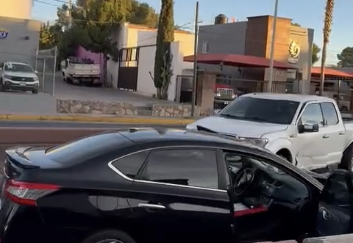 Choque entre Sentra y pick up en la Cantera provoca afectaciones viales en Chihuahua