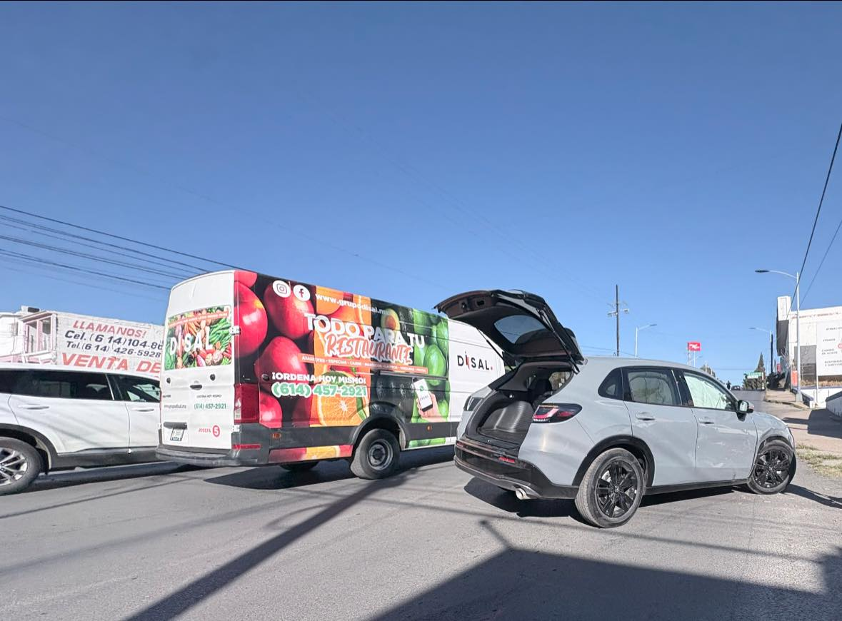 Chihuahua, Chih.— Un accidente vial registrado la tarde de este miércoles provocó tráfico lento en la avenida Independencia, luego de que una camioneta Honda y un vehículo Mazda chocaran en el cruce con calle Escudero, en cel centro de la ciudad de Chihuahua.