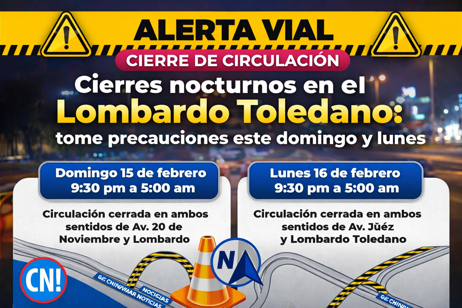 Cierres nocturnos en el Lombardo Toledano: tome precauciones este domingo y lunes