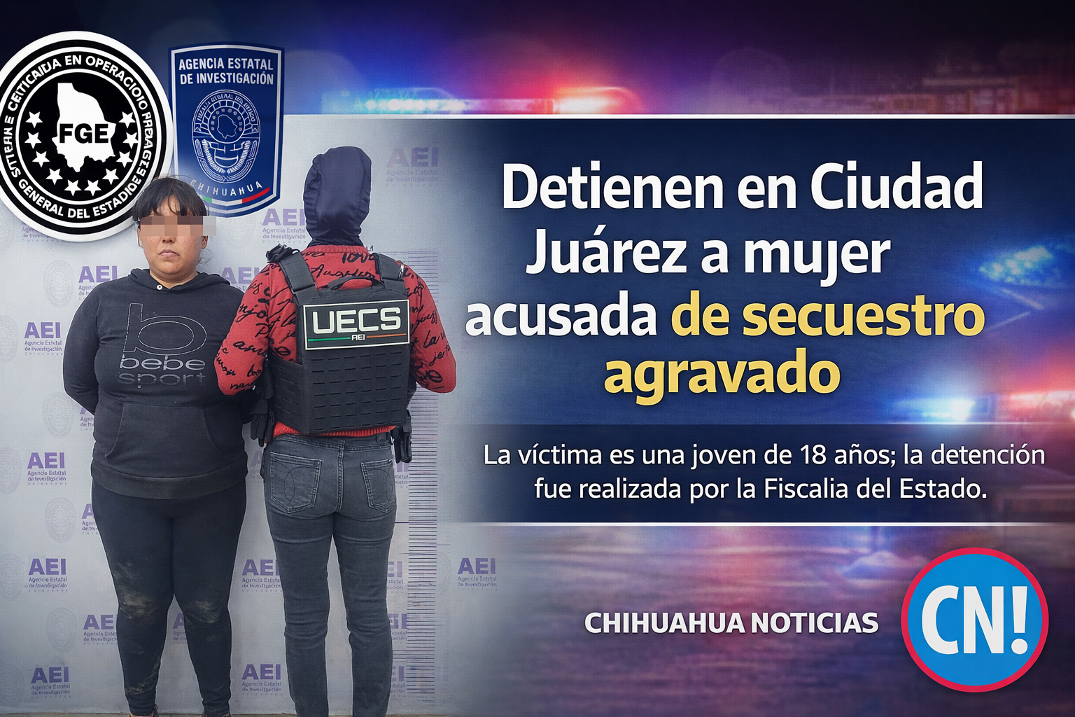 Detienen en Ciudad Juárez a mujer acusada de secuestro agravado de joven de 18 años