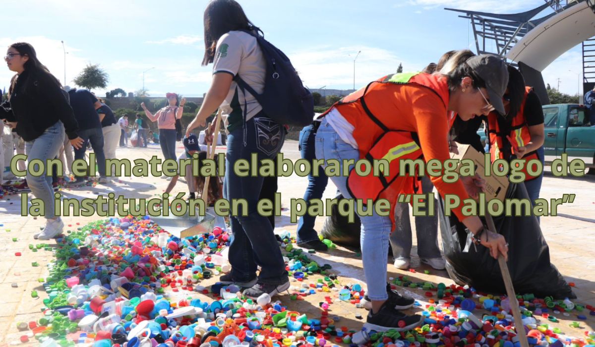 En continuidad a los eventos para celebrar el 50 aniversario del Colegio de Bachilleres del Estado de Chihuahua (COBACH), se llevó a cabo la elaboración de un mega logo con tapas de plástico, el cual fue colocado en la explanada del parque “El Palomar”.