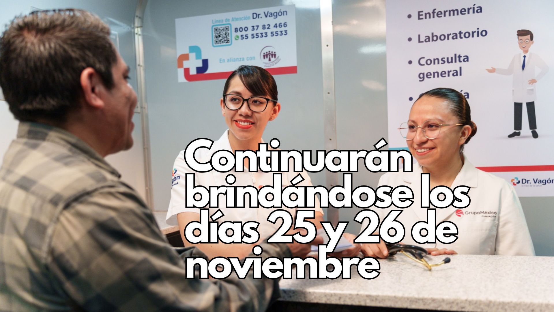 La Secretaría de Desarrollo Humano y Bien Común detalló que los servicios médicos gratuitos, así como la entrega de medicamentos a la población que lo requiera, continuarán brindándose los días 25 y 26 de noviembre en la capital, en la antigua estación del ferrocarril, ubicada en la avenida División del Norte.