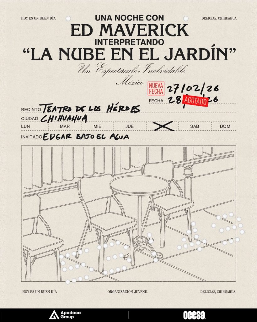 Chihuahua, Chih.— La música que duele bonito vuelve a casa. Ed Maverick confirmó su regreso a la capital del estado con dos conciertos los días 27 y 28 de febrero de 2026, en una velada que promete introspección, honestidad brutal y un canto colectivo que conecta desde lo más simple hasta lo más profundo.