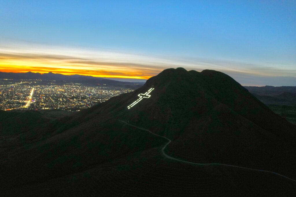 Chihuahua, Chih.- Desde la madrugada de este lunes 1 de diciembre, la tradicional cruz ecuménica del Cerro Grande volvió a brillar en lo alto de la capital, marcando oficialmente el inicio del espíritu navideño para miles de familias chihuahuenses. Su iluminación permanecerá activa durante toda la temporada decembrina, visible desde distintos puntos de la ciudad.