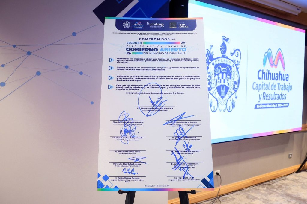 “Con la firma de estos compromisos, reiteramos que el gobierno abierto en Chihuahua no es una excepción: es una ruta. Una ruta que apuesta por la innovación pública, por el uso de tecnologías, por lenguaje claro, por formatos abiertos y por una participación ciudadana cada vez más incidente”, expresó el alcalde.