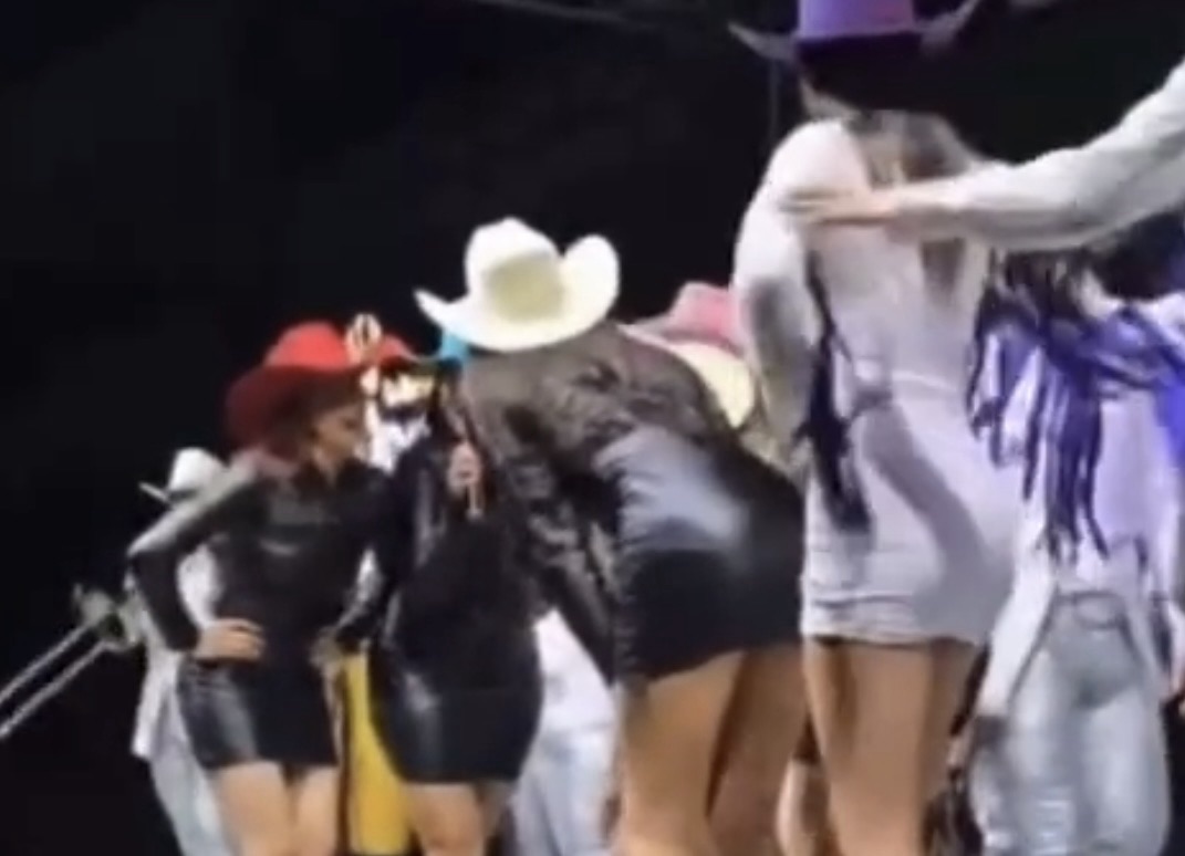 El espectáculo, que contaba con la participación de Los Rieleros del Norte y Su Majestad La Brisa, se desarrollaba con normalidad hasta que el grupo de ballet identificado como “Las Chicas Doradas” subió al escenario para acompañar la presentación musical.
