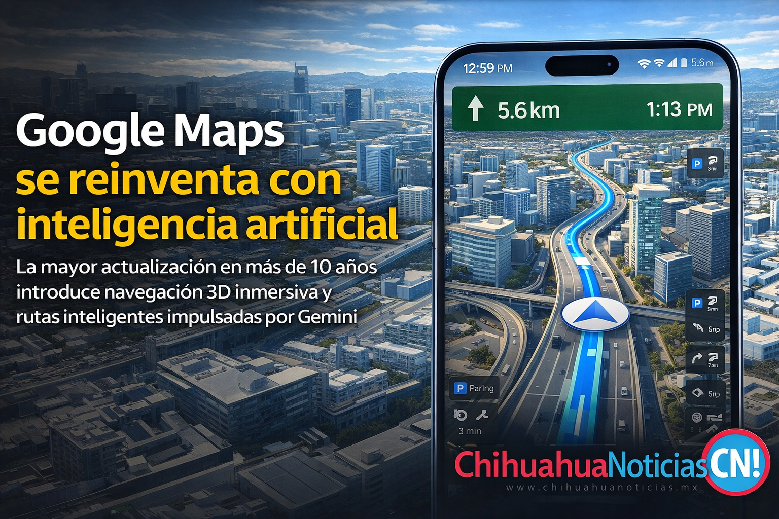 • Guía visual más clara: la navegación mostrará detalles del entorno urbano en 3D para facilitar la orientación.