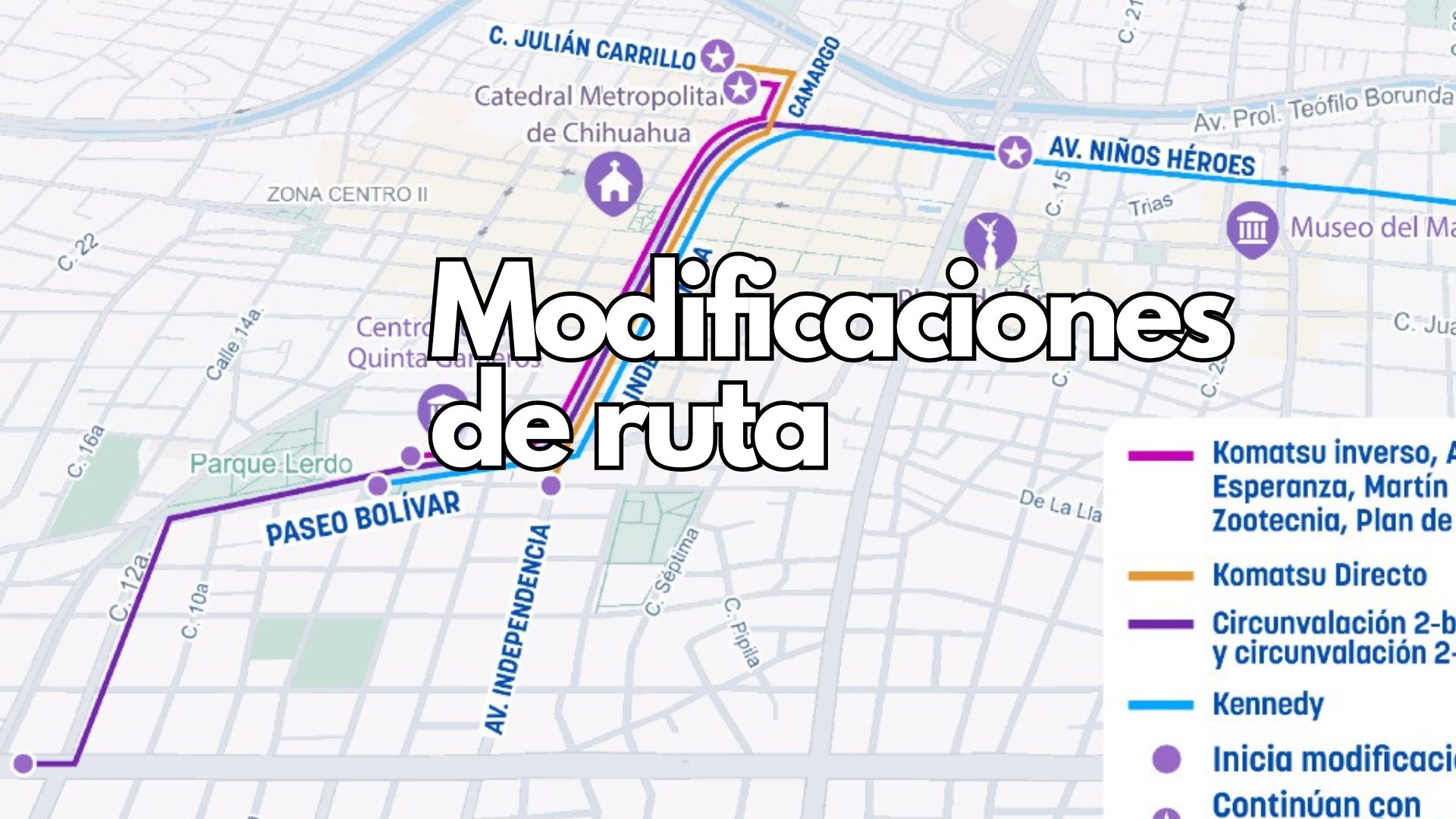 • La ruta circula por avenida Juárez en su ruta normal, continúa hasta calle 27 y da vuelta a la derecha, sigue hasta Teófilo Borunda Norte y da vuelta a la izquierda, continúa hasta llegar a glorieta de avenida Ocampo y da vuelta a la derecha para subir y tomar la salida hacia la Ocampo (gira a la derecha para incorporarse en Ocampo), continúa hasta la Niños Héroes y da vuelta a la izquierda para seguir con su ruta habitual