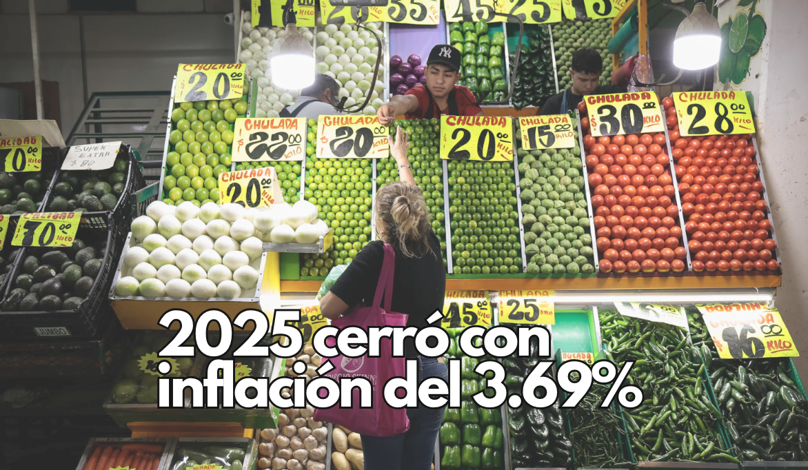 Inflación en México cierra 2025 en 3.69%, su nivel más bajo en tres años