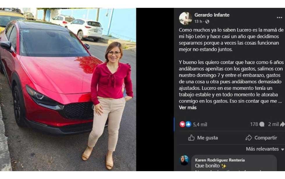 A través de Facebook, compartió una fotografía de una camioneta color rojo junto a su ex pareja en el estado de Nayarit.