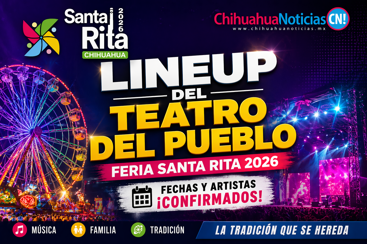 Lineup del Teatro del Pueblo de la Feria Santa Rita 2026: fechas y artistas confirmados