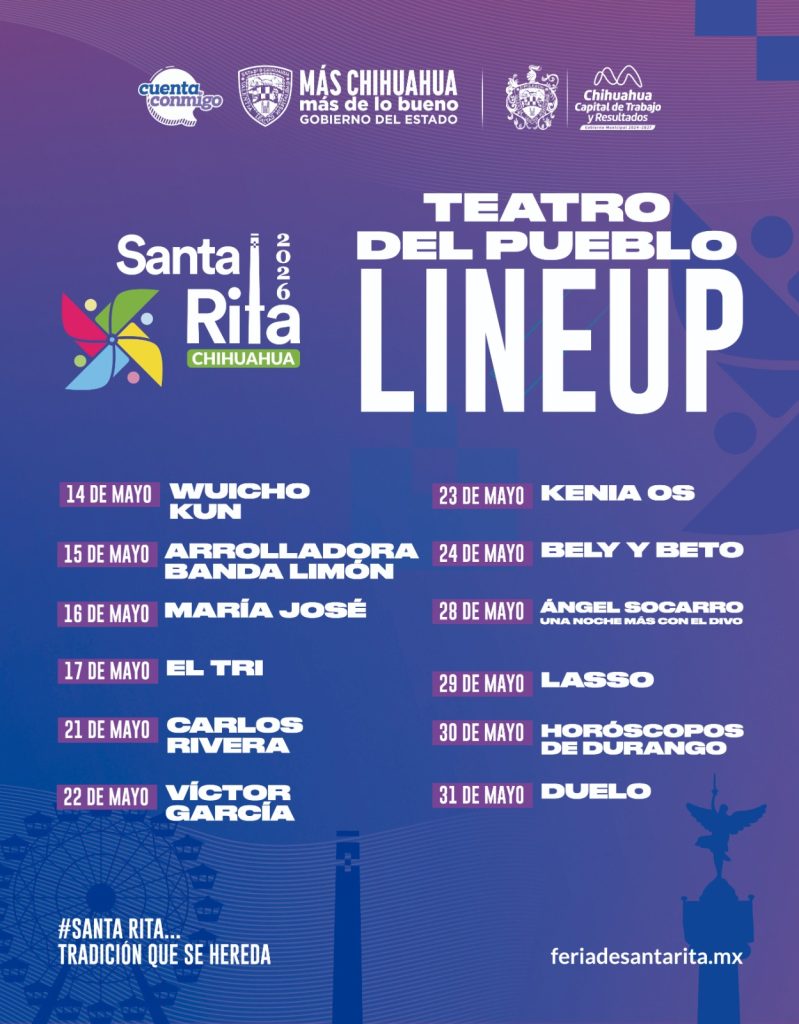 La Feria Santa Rita 2026 ya tiene lista su cartelera oficial del Teatro del Pueblo, consolidando una programación que mezcla nostalgia, talento actual y espectáculos familiares, con el objetivo de llenar el recinto en cada una de sus presentaciones.