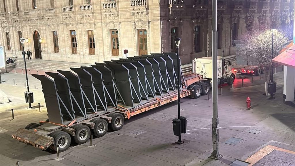 Durante la noche de este jueves, alrededor de las 22:00 horas, maquinaria pesada y personal operativo arribaron al primer cuadro de la ciudad de Chihuahua para continuar con la instalación de estructuras de protección en edificios públicos, como parte de los preparativos rumbo a las movilizaciones previstas para el Día Internacional de la Mujer, este … Sigue leyendo Maquinaria y protecciones se instalan en el Centro de Chihuahua previo a movilizaciones del 8M