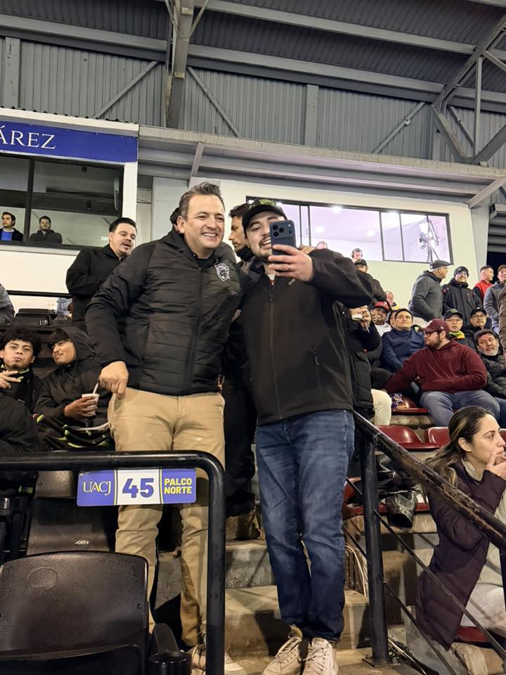 Previo al arranque del partido y a lo largo del encuentro, el edil convivió con familias y aficionados, con quienes se tomó fotografías y compartió momentos de cercanía, en un ambiente de entusiasmo y respaldo al deporte profesional en la entidad. La presencia del alcalde fue bien recibida por la afición juarense, que destacó el valor simbólico del acompañamiento institucional al futbol chihuahuense.