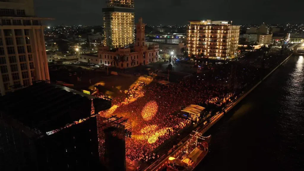 Un espectáculo visual de escala global: Luces láser, pirotecnia y una producción de primer nivel transformaron el malecón en un escenario digno de los grandes festivales del mundo.