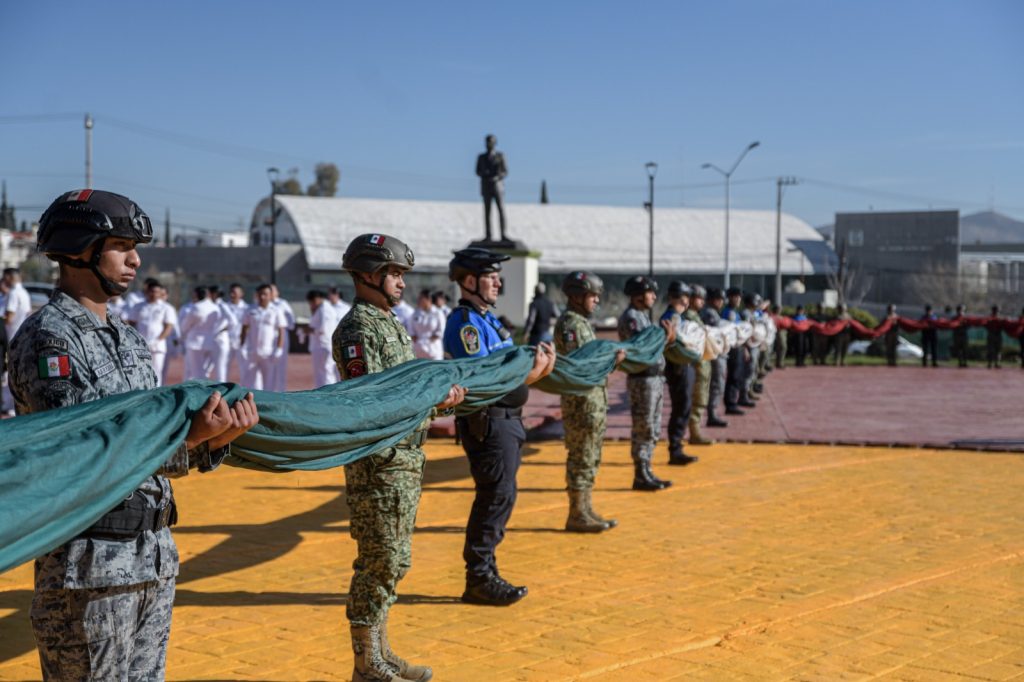 El acto solemne incluyó el juramento de lealtad a la Bandera y el abanderamiento de escoltas de 10 secundarias y 8 instituciones de nivel medio superior. Autoridades civiles y militares, integrantes del gabinete estatal, representantes de la sociedad civil, estudiantes y ciudadanía participaron en los honores al Lábaro Patrio y en la entonación del Himno Nacional Mexicano.