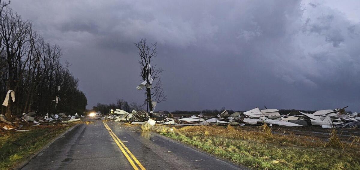 • En Kansas, un tornado golpeó Hillsdale, destruyendo viviendas y comercios, dejando al menos dos personas heridas.