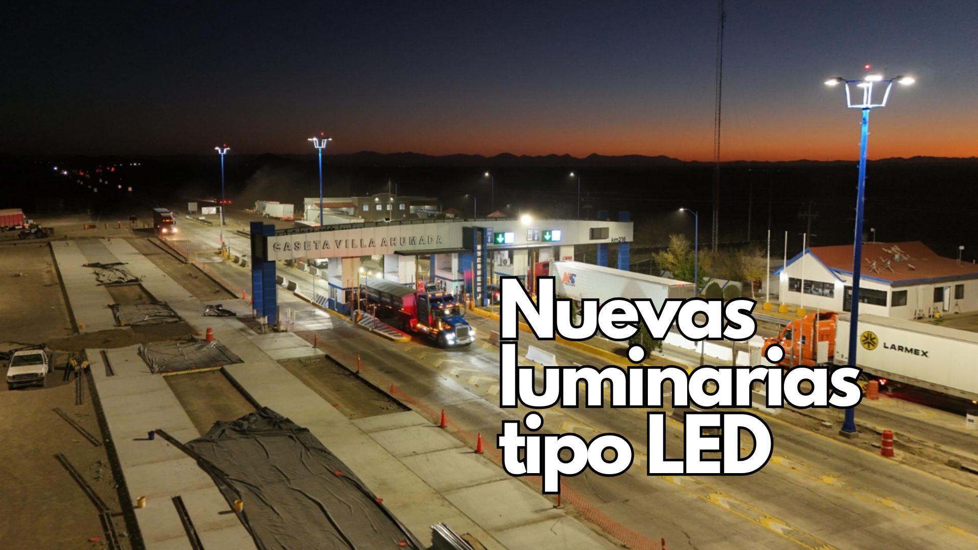 El Gobierno del Estado, a través de la Secretaría de Comunicaciones y Obras Públicas (SCOP), concluyó la modernización del sistema de iluminación en la caseta de cobro de Villa Ahumada, como parte de las acciones para brindar un servicio más seguro y eficiente a las y los usuarios que transitan por esta vía.