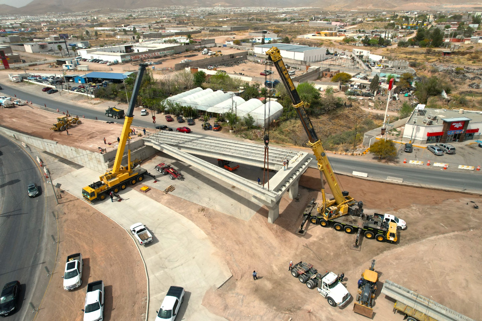 La colocación de estas piezas se realizó con el apoyo de maquinaria especializada y personal técnico, marcando una nueva etapa en el desarrollo de la obra que busca mejorar la movilidad en uno de los corredores viales con mayor flujo vehicular en la ciudad.