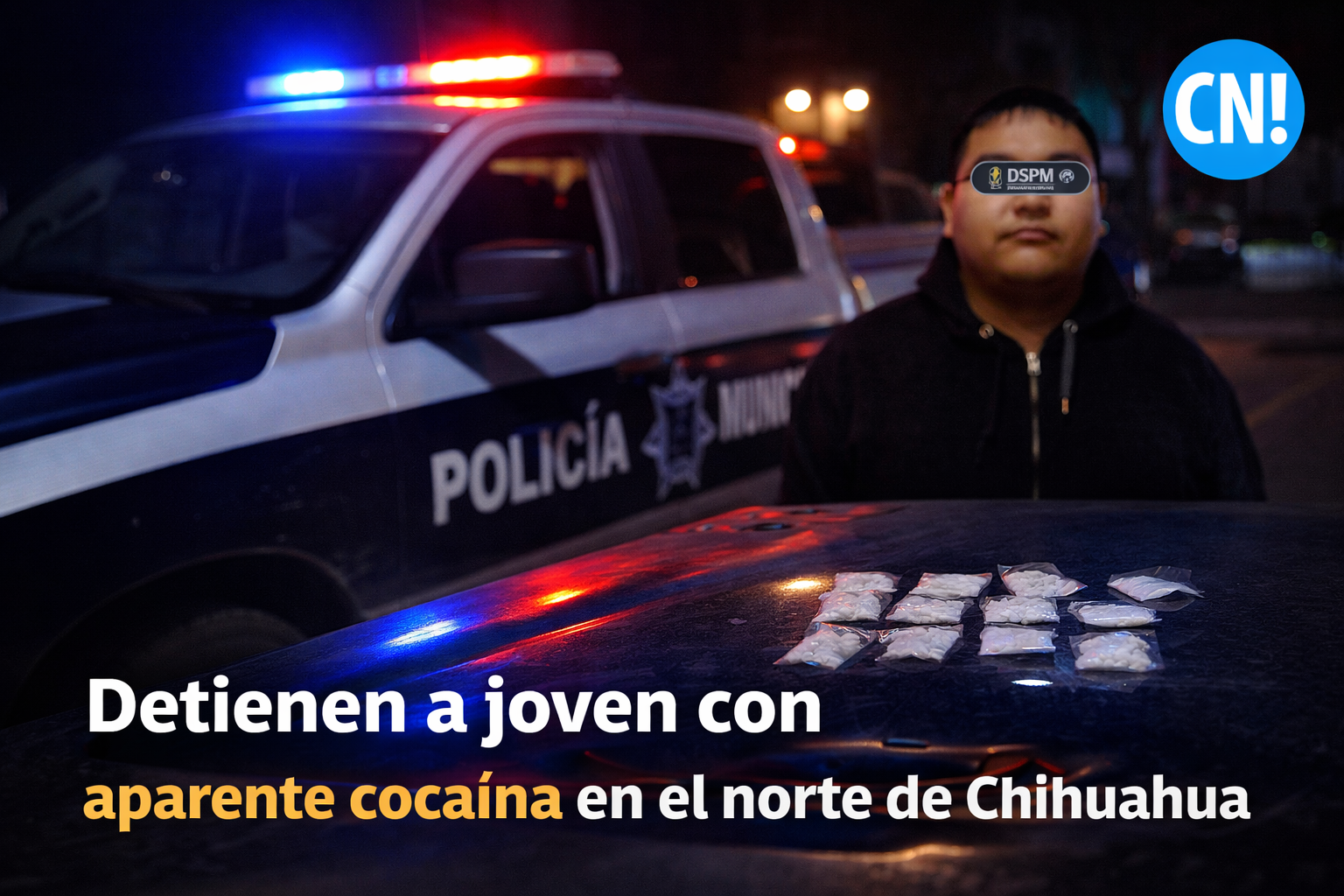 Policías municipales detienen a joven con aparente cocaína al norte de Chihuahua
