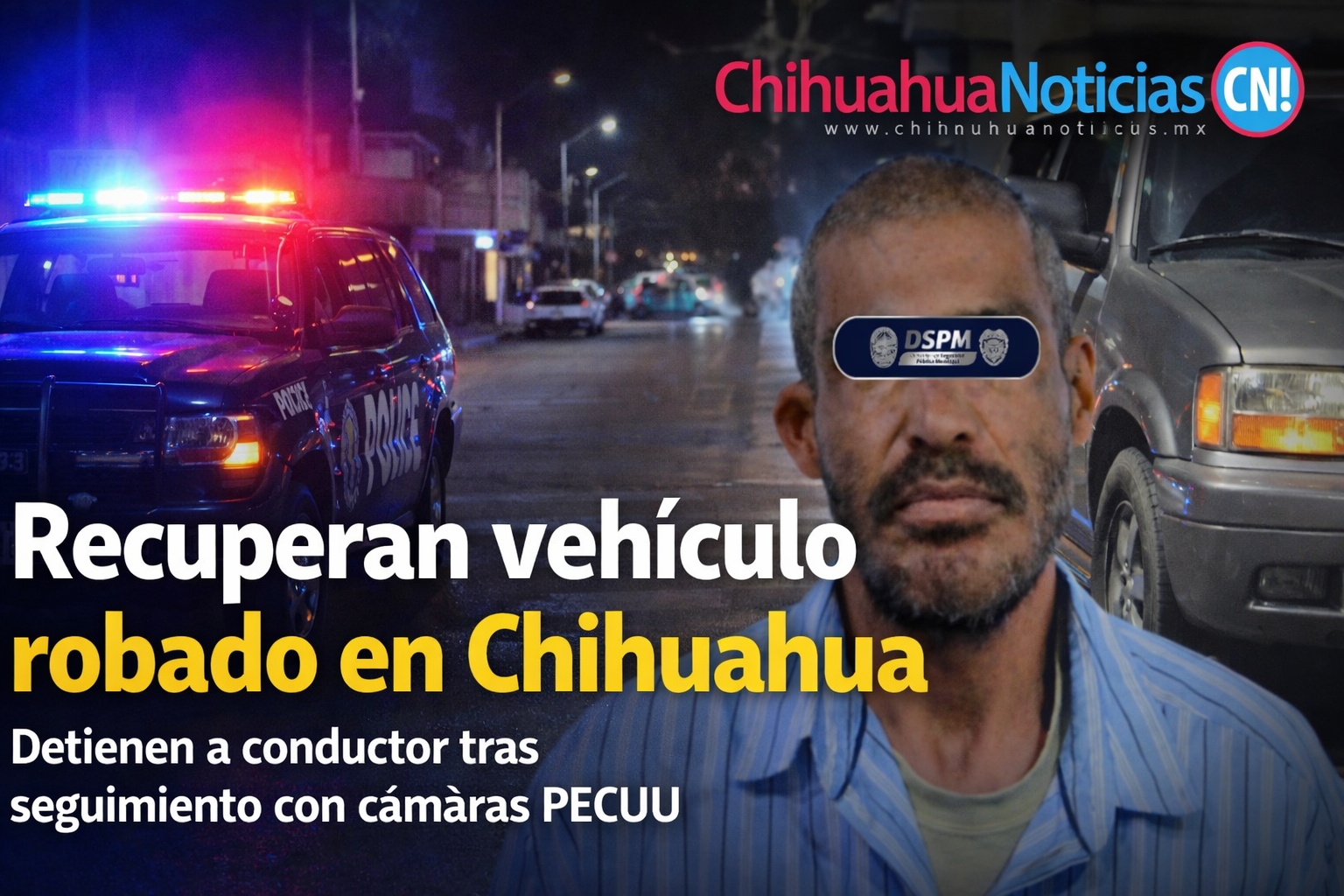 Chihuahua, Chih., 11 de abril de 2026.— Elementos de la Policía Municipal lograron la recuperación de un vehículo con reporte de robo y la detención de un hombre en calles del sur de la ciudad, como resultado de labores de inteligencia apoyadas por el sistema de videovigilancia de la Plataforma Escudo Chihuahua.