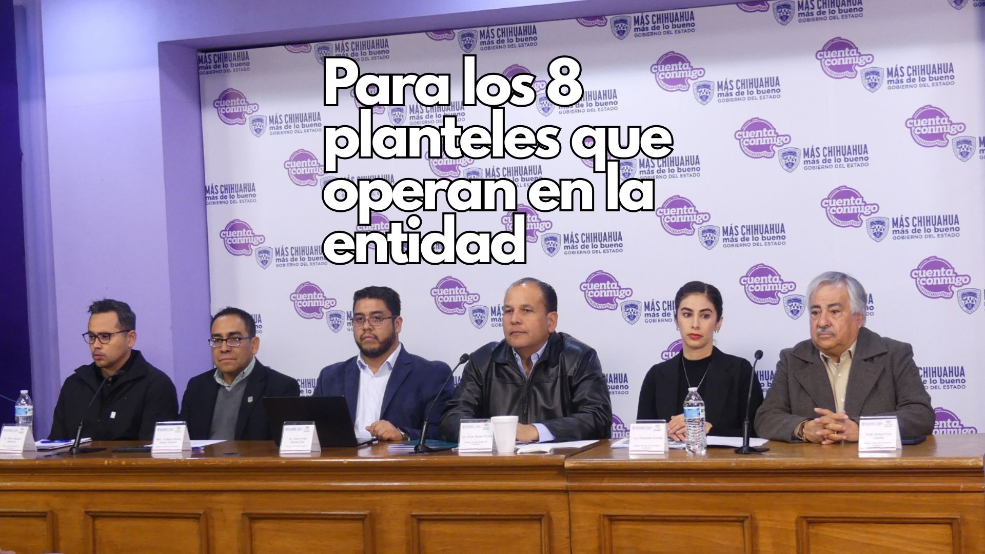 En la conferencia de prensa estuvieron presentes Víctor Hugo Reyes Díaz, director del plantel Juárez I; Gustavo Alonso Gasca Ramírez, director del plantel Chihuahua I; Rafael Díaz Carrillo, director estatal de Formación Académica; Elizabeth Azaeta, subjefa técnica de Formación Académica; y Alan Vázquez Martínez, director de Capacitación y Planeación.