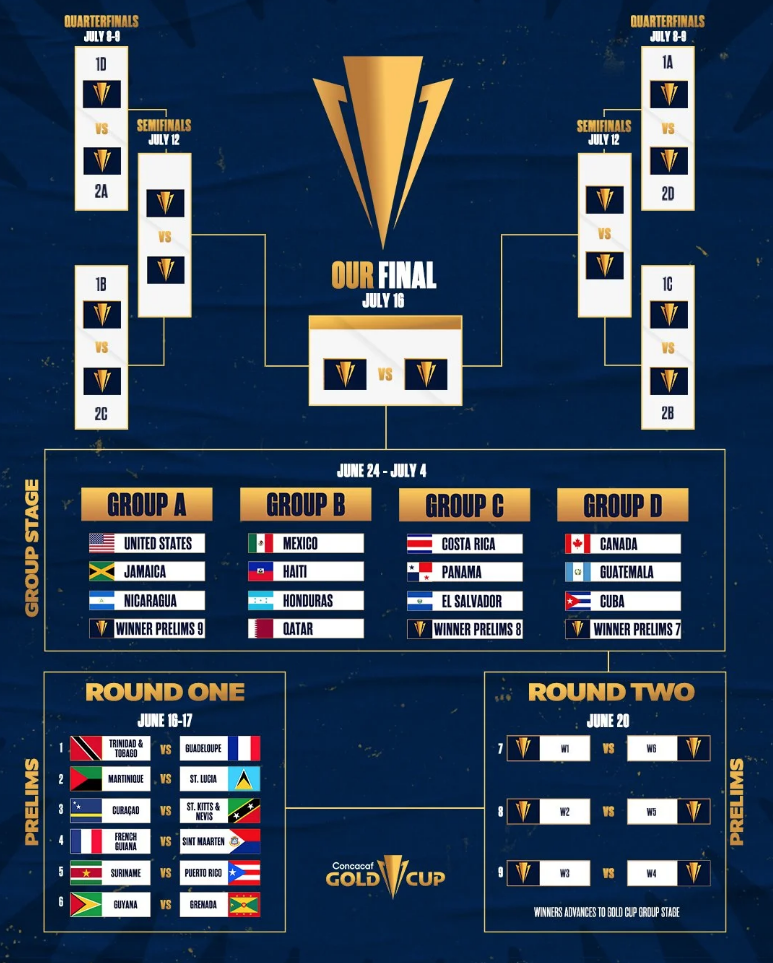 Estados Unidos encabezará el Grupo A y luce como gran favorito junto a Jamaica. El Grupo C se ve un poco más parejo con Costa Rica, Panamá y El Salvador; mientras que en el Grupo D Canadá partirá como el mayor candidato a terminar en primer lugar.