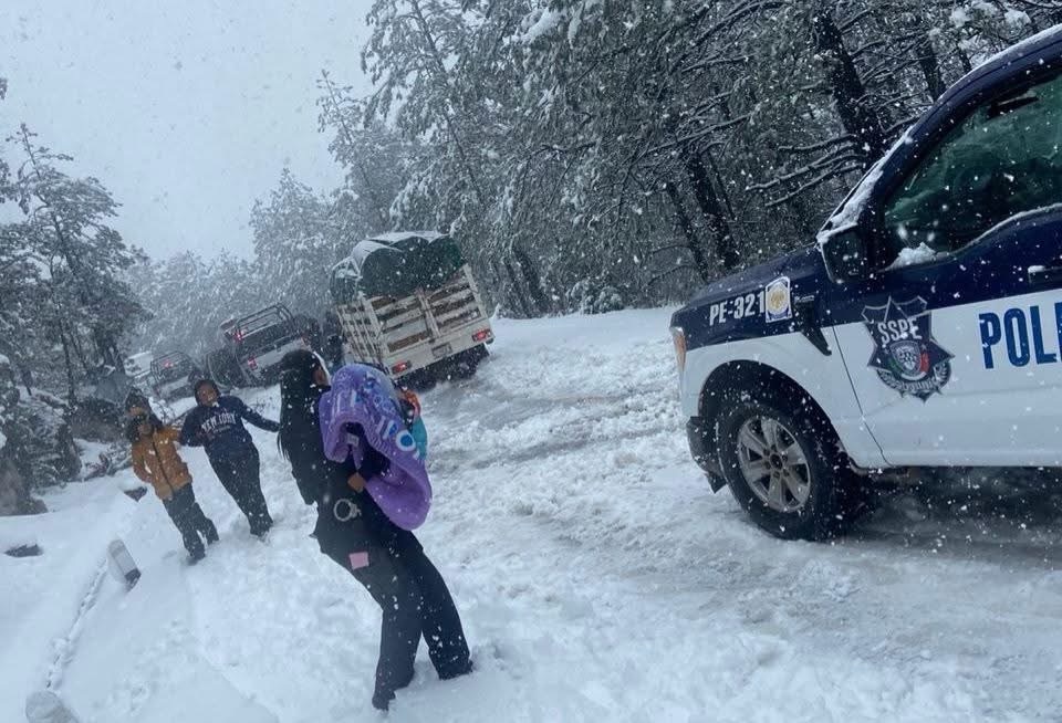 El hecho ocurrió durante la mañana de este 24 de enero, sobre la carretera que comunica de Hidalgo del Parral hacia Guadalupe y Calvo, cuando los agentes estatales detectaron una camioneta que se encontraba a un costado del camino sin posibilidad de avanzar, debido a la acumulación de nieve en la zona.