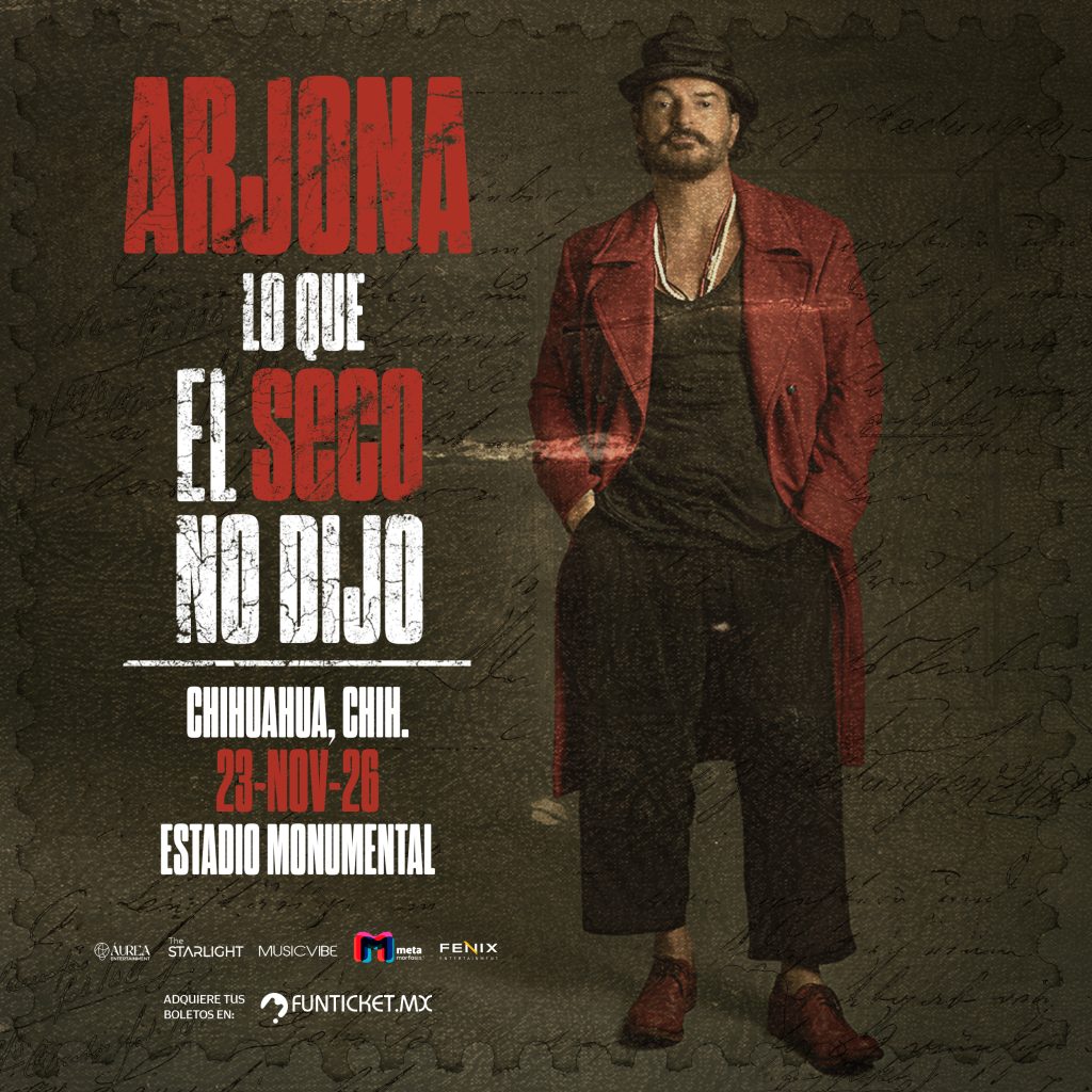 Chihuahua, Chih.— El cantautor guatemalteco Ricardo Arjona volverá a pisar tierras chihuahuenses este 2026 con su nueva gira “Lo que el Seco no dijo”, en un concierto programado para el próximo 23 de noviembre en el Estadio Monumental.