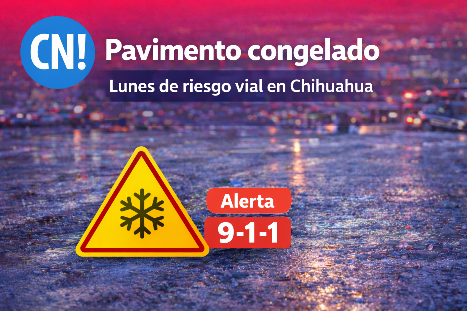 Autoridades emitieron alerta preventiva ante el riesgo de pavimento congelado durante las primeras horas del lunes 12 de enero de 2026 en la ciudad de Chihuahua, derivado de las bajas temperaturas combinadas con lluvias ligeras.