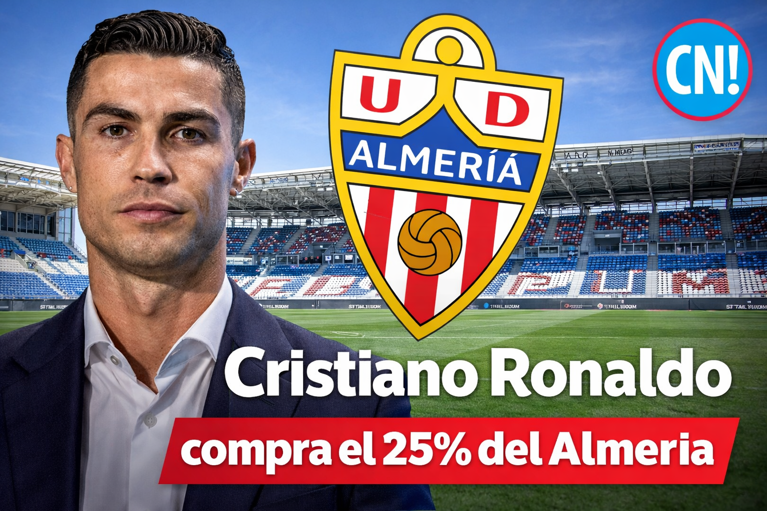 Almería, España. El futbol europeo vuelve a girar alrededor de Cristiano Ronaldo, ahora fuera de la cancha. El astro portugués adquirió el **25 por ciento del club español UD Almería, equipo que actualmente compite en la Segunda División, en una operación que refuerza su perfil como inversionista estratégico en la industria deportiva.